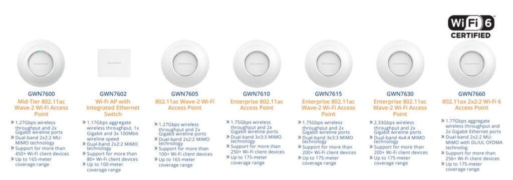 free cloud and mobile app management with GWN.Cloud, on-premise software management with GWN.Manager, and our APs